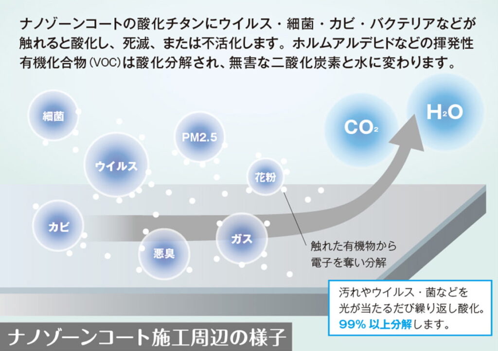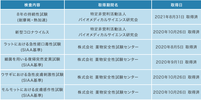 抗菌・抗ウイルス関連のエビデンス12種類、その他4種のエビデンスを取得済。今後もさらなる品質の向上と安心安全な施工管理の確立を目指して新たなエビデンスの取得を行ってまいります。
